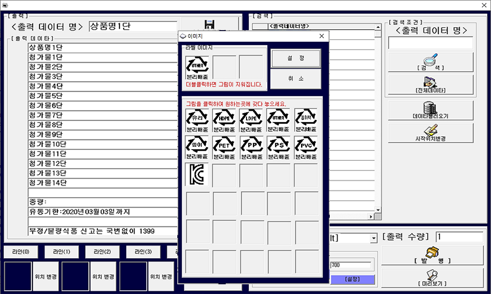 엑셀파일에 작성한 출력 데이터를 불러와 라벨을 제작하는 형식으로,